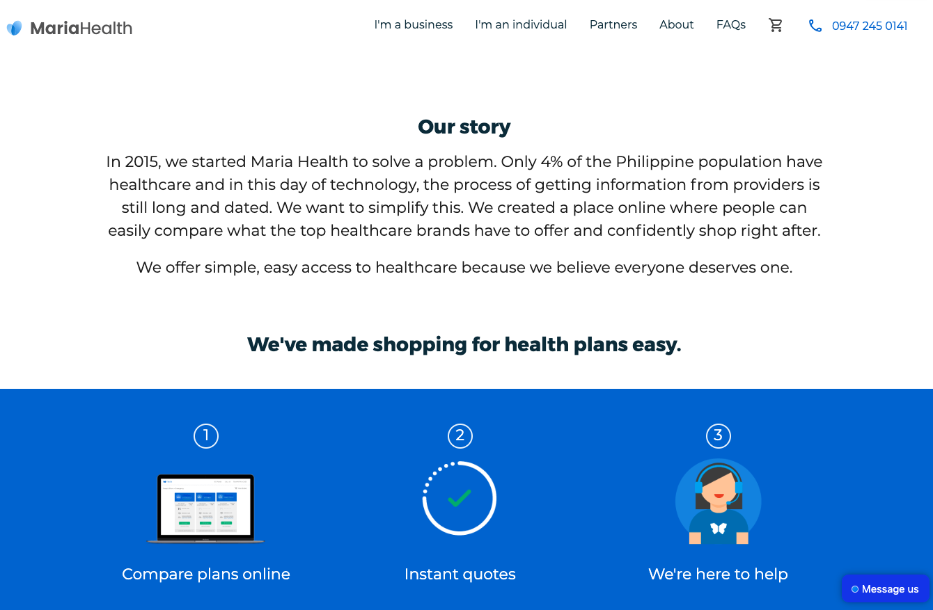 마리아헬스는 2016년에 설립됐다. 필리핀 건강보험은 문제가 있으며, 필리핀인 10명 중 8명은 평생 건강 검진을 받지 않는 것으로 보고됐다. 마리아헬스는 온라인 건강 플랫폼으로 확장하는 것이 목표다.