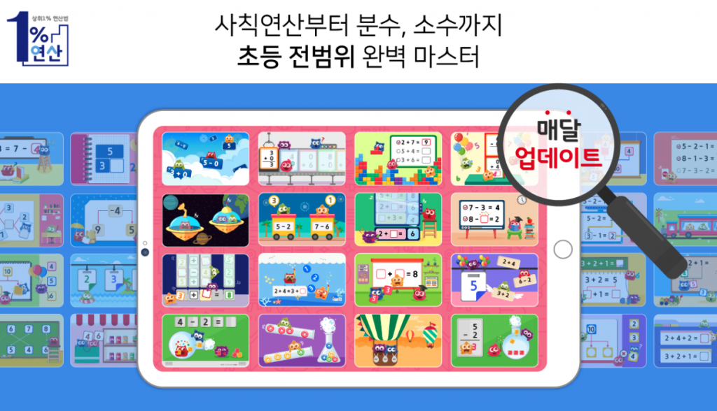 매쓰마스터는 초등 수학 연산 서비스 일프로연산 앱을 매달 업데이트 하며 초등 전범위를 커버할 계획입니다.