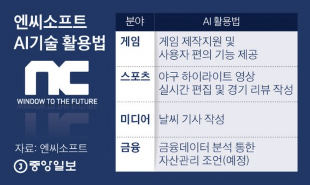 그동안 엔씨소프트는 인공지능을 ▲게임 ▲스포츠 ▲미디어 등 활용에 확장했는데요. 여기에 금융을 더하며 영역을 넓히고 있습니다.