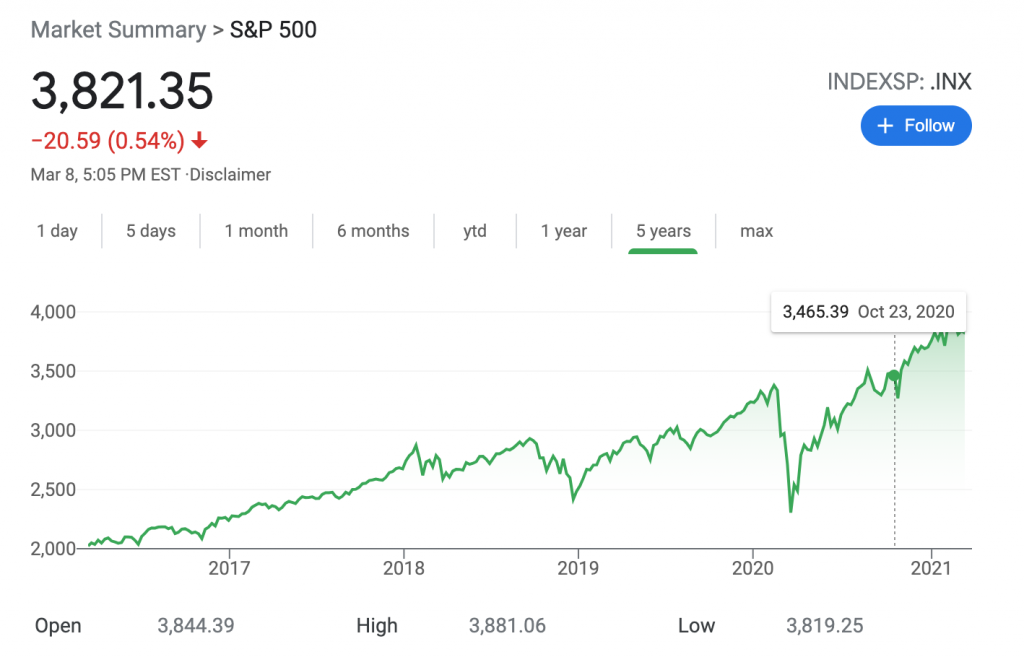 3월 23일부터 미국의 3분기 GDP 데이터에서 경제 회복이 시작됐다고 확정되었던 10월 29일까지, 증시는 49.5% 상승했습니다. 주식시장은 경제 성장을 미리 가격에 반영한 것이죠.