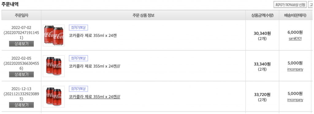 세 달에 한 번 정도 48캔 주문해서 쟁여두는 중이다. 매주 5-6캔 정도는 마신다. 제로콜라에 맛들이고 나서는 선택지가 있다면 무조건 제로콜라만 마신다. 그냥 콜라와 맛에는 미묘한 차이가 있는데 ‘제로 칼로리’가 주는 매력이 상당하다.