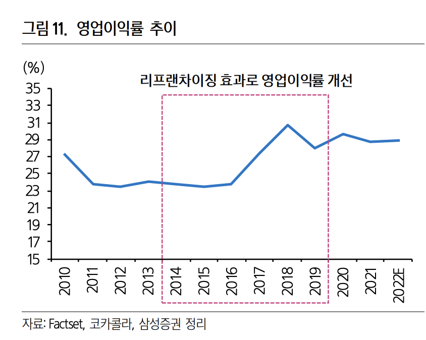 결국 영업이익률이 리프랜차이징 작업으로 개선됐다.