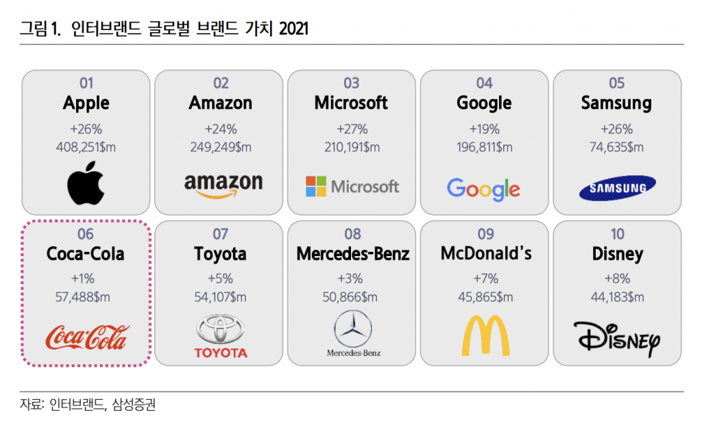 같은 제품을 팔면서도 꾸준히 가치가 상승하는 건 참 신기하다. IT 서비스를 만드는 입장에서 몇 달만 흘러도 개선을 해야 하는데 코카콜라 원액이라는 본질은 바꾸지 않으면서 세대가 흘러도 브랜드 가치를 글로벌 최고 수준으로 유지하는 건 배울 점이다.