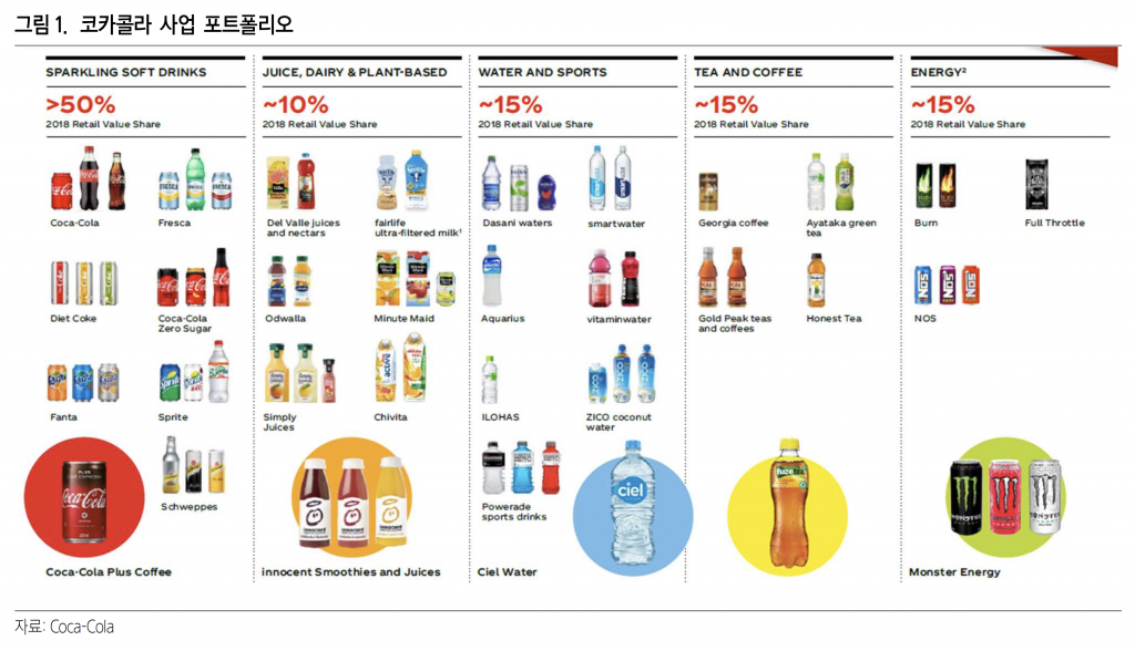 코카콜라는 이 노력으로 비탄산음료 매출 비중을 40%로 끌어올리며 이제는 코카콜라만 파는 기업에서 벗어났다.