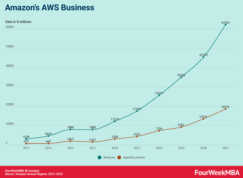 - 거대한 기술 기업으로 변신했고 이를 세계적으로 증명했다. MS와 구글은 AWS를 보고 뒤늦게 클라우드 컴퓨팅 시장에 속도를 올렸고 유럽, 멕시코, 인도 등으로 사업을 확장했다.