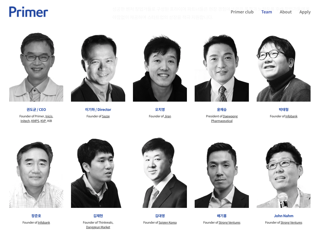 프라이머 클럽 출신으로는 ▲마이리얼트립 ▲스타일쉐어 ▲애드투페이퍼 ▲아이디어스 ▲숨고 등이 있다.