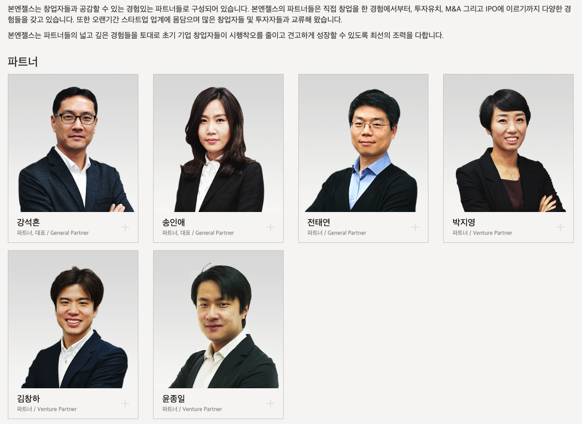 본엔젤스는 창업자들과 공감할 수 있는 경험있는 파트너들로 구성되어 있습니다. 본엔젤스의 파트너들은 직접 창업을 한 경험에서부터, 투자유치, M&A 그리고 IPO에 이르기까지 다양한 경험들을 갖고 있습니다. 또한 오랜기간 스타트업 업계에 몸담으며 많은 창업자들 및 투자자들과 교류해 왔습니다.