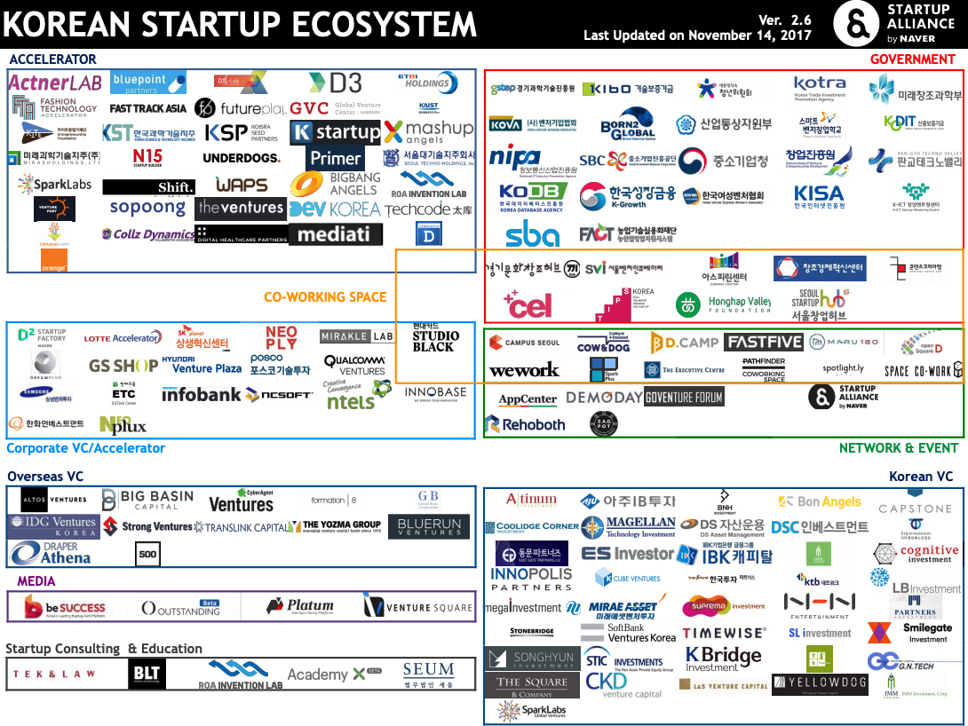 한국 스타트업 생태계를 위해 노력하는 <스타트업 얼라이언스>의 자료를 보면, 앞서 소개한 곳 외에도 스타트업 생태계를 구성하는 많은 조직을 확인할 수 있다.